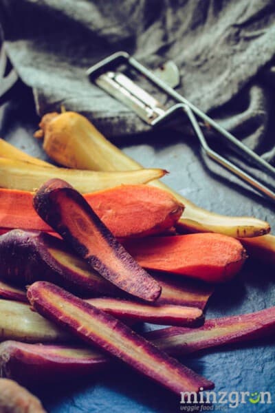Das sieht toll aus und schmeckt bestimmt super. Die violetten Möhren schmecken intensiv und geben sicher viel Geschmack an die Zucchini ab.
