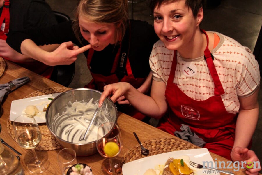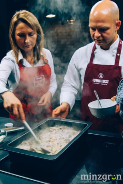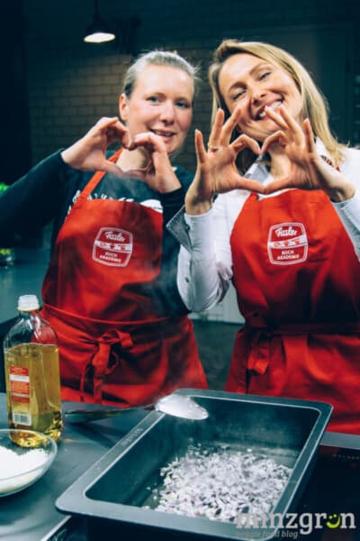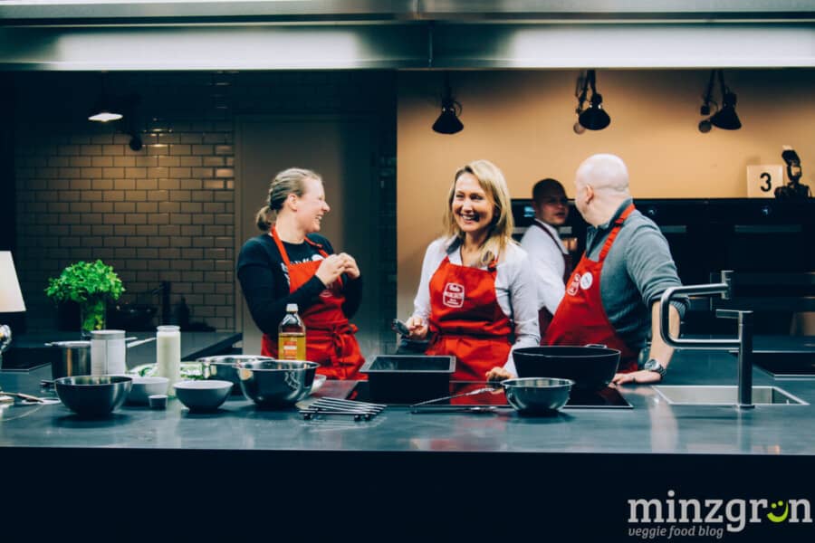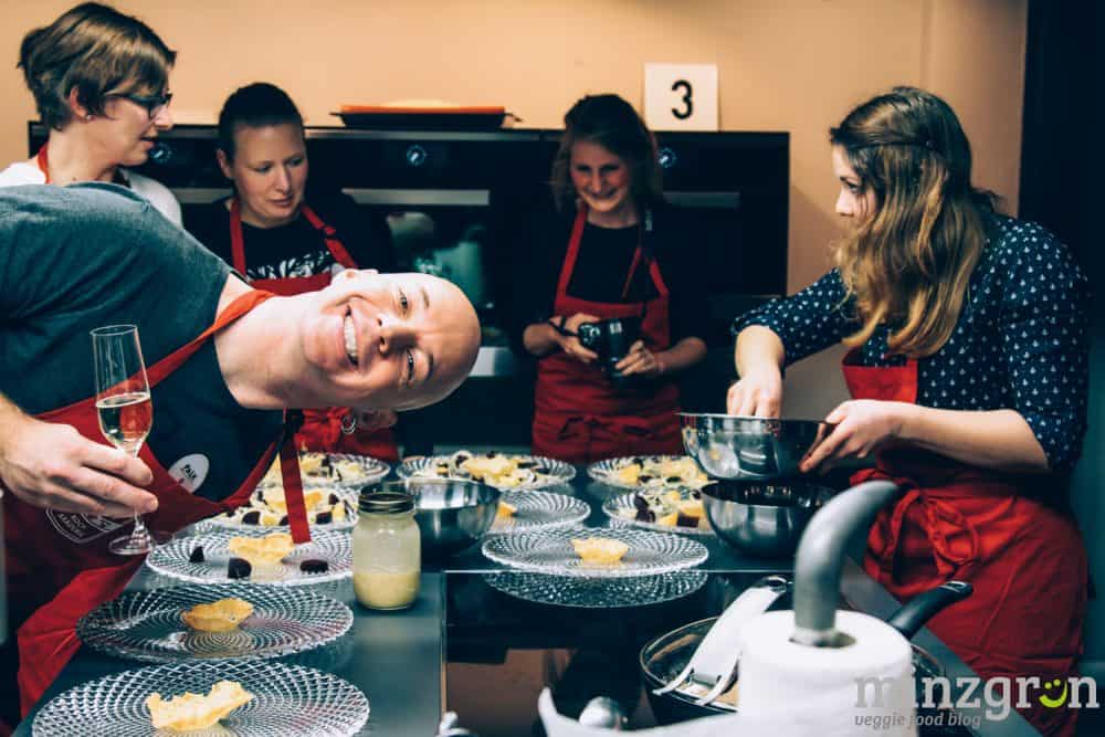 Tja, was soll ich sagen? Kennengelernt habe ich Aileen oder „mnzi“, wie ich sie aufgrund ihres Twitter-Names @mnzgrn manchmal liebevoll nenne, schon etwas früher, über Twitter 😀 was auch immer ein Erlebnis ist. So wie dieser Erlebniskochabend, bei dem ich Anteil haben durfte. Ganz ehrlich, ich bin kein (hardcore) Vegetarier aber ich habe mich überzeugen lassen, mal aus meiner Komfortzone herauszukommen. So, wie es Aileen anfangs schon beschrieben hatte. Nach der „jeder-zieht-einen-Stein-mit-Nummer“ Aktion gehörte ich plötzlich zu Team Vorspeise! Und eine Vorspeise vom Feinsten, Aileen hat es beschrieben, haben wir unseren Mitspeisenden mit großem Spaß kredenzt.