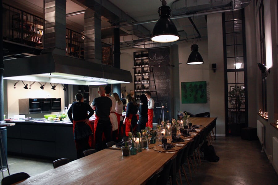 Auch für 2017 habe ich mir vorgenommen, öfter wieder die Komfortzone zu verlassen und direkt in der ersten Woche des neuen Jahres das erste Mal in die Tat umgesetzt, als ich die heimische Küche gegen die der LukullusT-Kochschule tauschte. Als ich von Fissler, einem der international führenden Kochgeschirrhersteller und Veranstalter von Kochevents gefragt wurde, ob ich Lust auf ein kleines MeetUp – also einen gemeinsamen Kochabend mit Euch – im LukullusT hier in Leipzig hätte, war das auch für mich etwas völlig Neues, aber eine fantastische Gelegenheit Euch mal kennenzulernen (und andersherum natürlich). Trotz der recht kurzfristigen Terminbekanntgabe waren die neun Plätze im Nu vergeben – zeigt eben, dass ihr auch spontan sein könnt! Yeah! 🙂 Und so machte ich mich – zugegeben richtig aufgeregt – am 5. Januar 2017 auf den Weg zum LukullusT in der Leipziger Innenstadt (zum Glück gab’s dort Begrüßungssekt, hilft ja immer ein bisschen gegen große Aufregung!) um wenig später neun von Euch zu treffen und einen gemeinsamen Abend in imposanter Location zu verbringen.