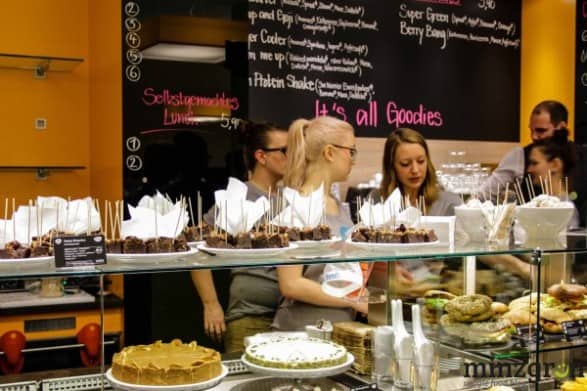 Das Bistro „Goodies“ im Eingangsbereich verwöhnt die Besucher außerdem mit veganen Spezialitäten wie frischen Salaten, Wraps, Bagels, Frühlingsrollen oder Suppen. Wer’s süßer mag, wird beim rohköstlichen Kuchen (Raw Cake), Cupcakes und Desserts fündig. Ein leckerer Smoothie, ein Apple Pie Drink oder eine fair gehandelte Kaffeespezialität mit einer Reihe an Milchauswahlmöglichkeiten machen den Besuch perfekt! Die 30 Sitzplätze laden zum gemütlichen Verweilen ein, wer nur wenig Zeit hat, nimmt’s einfach mit.