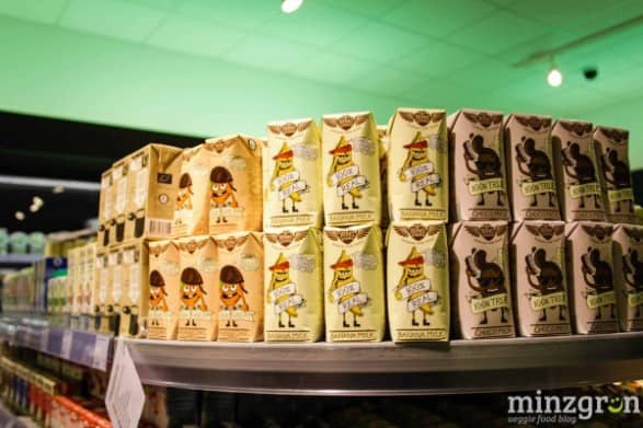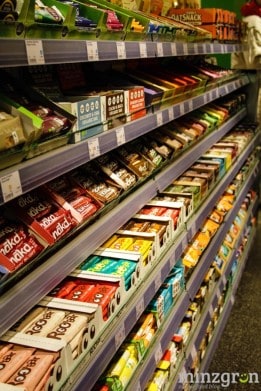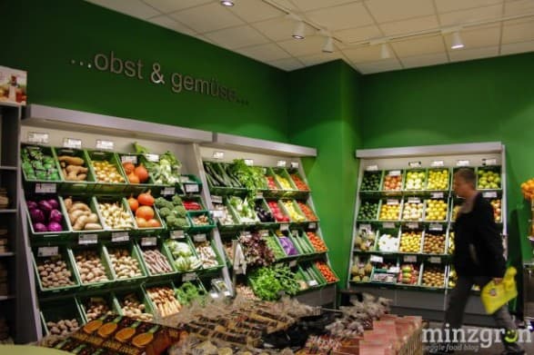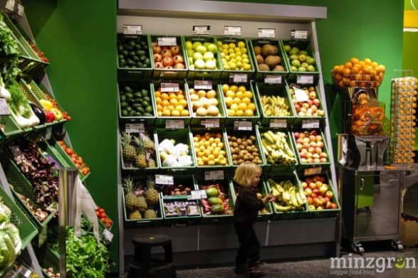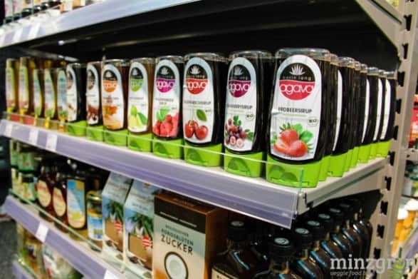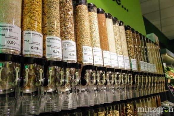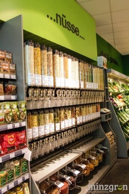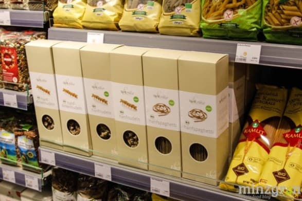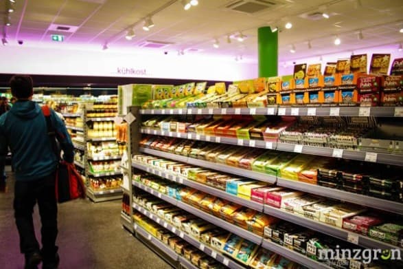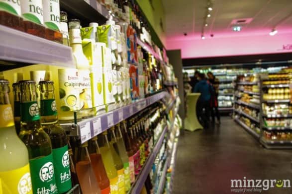 Auf den über 400qm Verkaufsfläche findet sich alles – von frischem Obst und Gemüse, Süßigkeiten, Hülsenfrüchten, Brotaufstrichen, Gewürzen, Kochbüchern, Getränken, Hundefutter, Eiscreme, Tiefkühlpizza bis hin zur Zahnbürste. 90% des Sortiments besteht übrigens aus Bio-Produkten – darunter beispielsweise 45 verschiedene Pflanzendrinks und über 80 Käsealternativen.