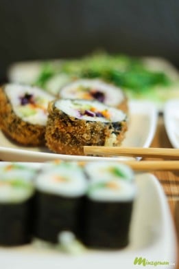 Mittlerweile gibt es viele verschiedene Kombinationen mit Gurke, Avocado, Rettich, Möhre, Algensalat, Frischkäse, Rotkohl, Rucola..